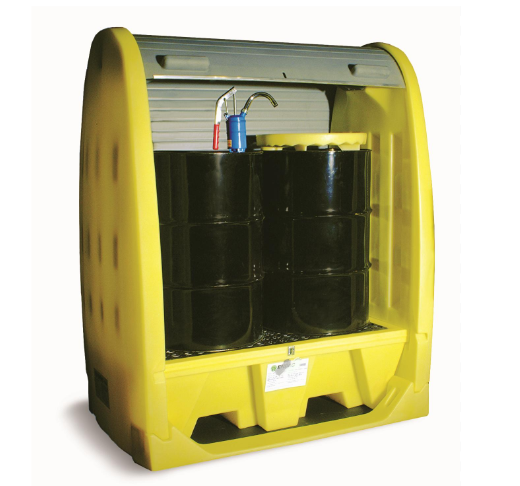 Spill-proof roll-up drum storage tank |